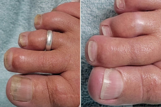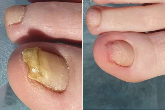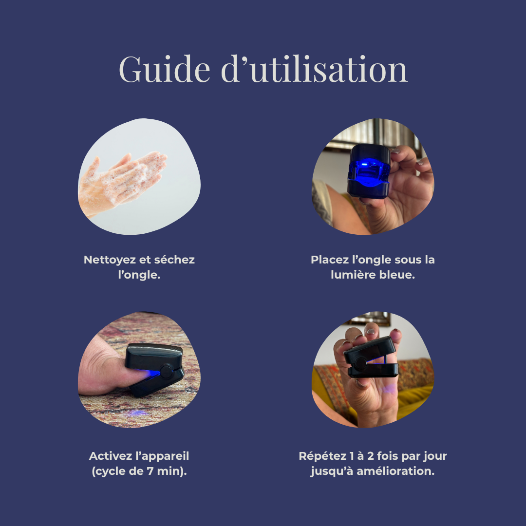 L’appareil aide à éliminer le champignon et réduit considérablement le risque de récidive. Pour de meilleurs résultats, il est recommandé de continuer à l’utiliser régulièrement jusqu’à ce que l’ongle ait totalement repoussé.